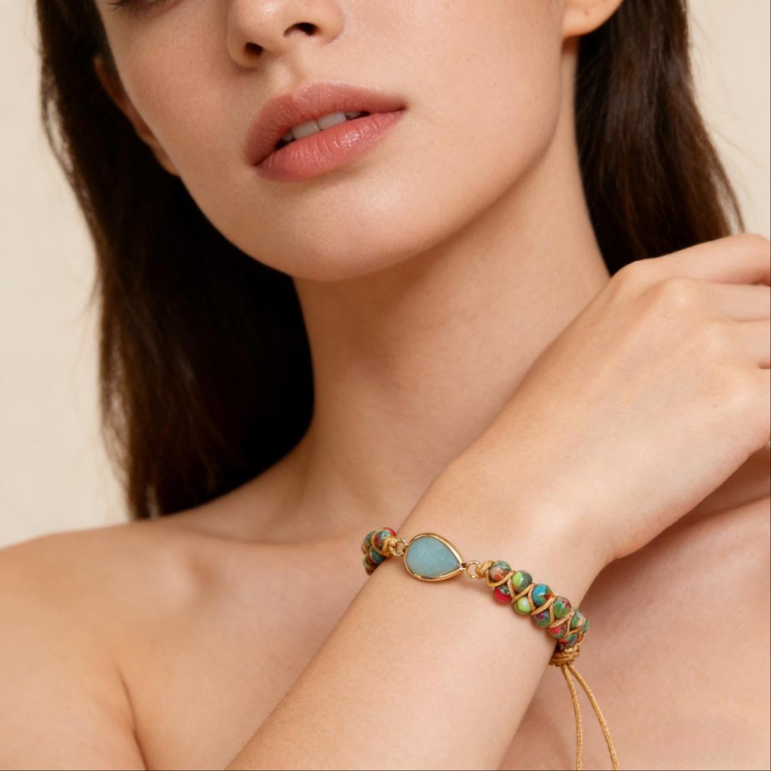Embrace calm energy and natural beauty with this Natural Amazonite Gemstone Charm Bracelet. Featuring soothing amazonite beads and your choice of a delicate waterdrop or heart pendant, this knotted braided design symbolizes harmony, love, and emotional balance. Often associated with yoga and mindfulness, amazonite is believed to inspire confidence and inner peace. The adjustable braided style ensures a comfortable fit for everyday wear. Whether worn for its spiritual meaning or gifted as a symbol of friendship, this bracelet adds intention and elegance to any look.